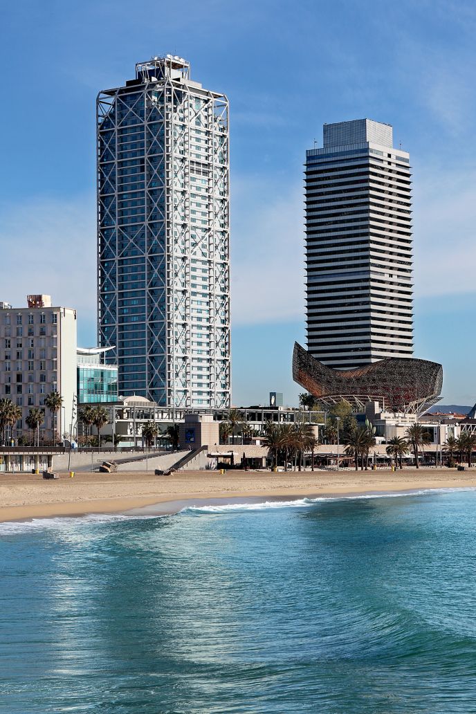 يقع هذا الفندق الفاخر في مبنى شاهق من الزجاج والفولاذ أمام تمثال الأسماك الشهير “بيكس”، ويبعد 2.7 كيلومتر عن كنيسة “ساغرادا فاميليا” الشهيرة وساحة “كاتالونيا” النابضة بالحياة.
